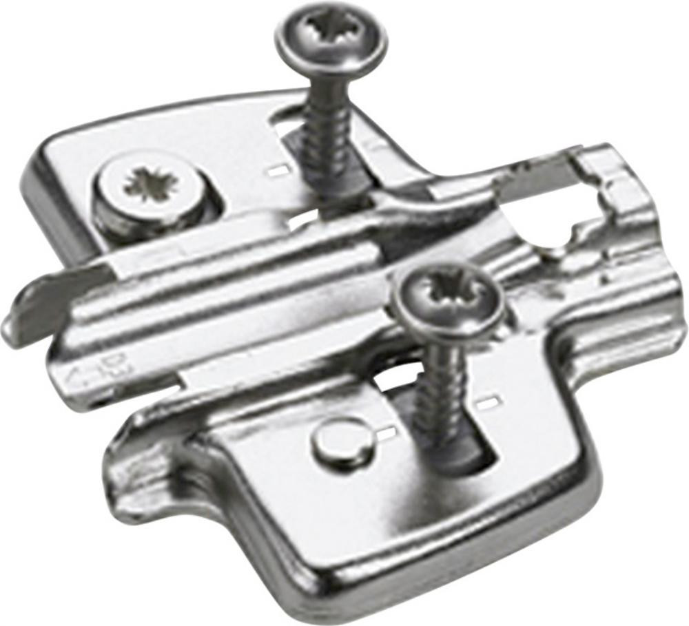 Kreuzmontageplatte mit Direkt-Höhenverstellung, Hettich Direkt mit Pilotzapfen und Spezialschrauben
