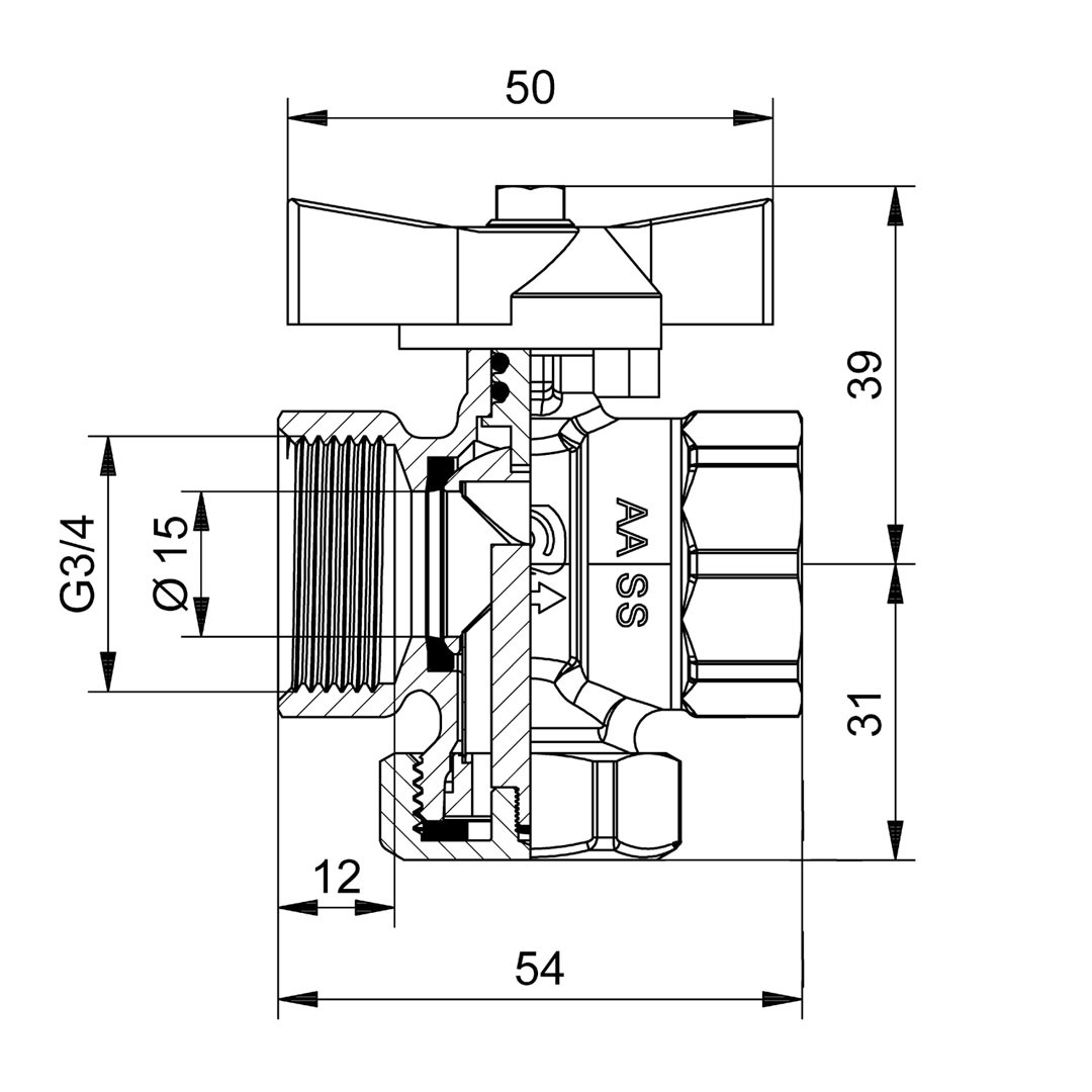 AFRISO Kugelhahn KH 01 H DFVFM G3/4 IG mit Filter/Magnet, vernickelt