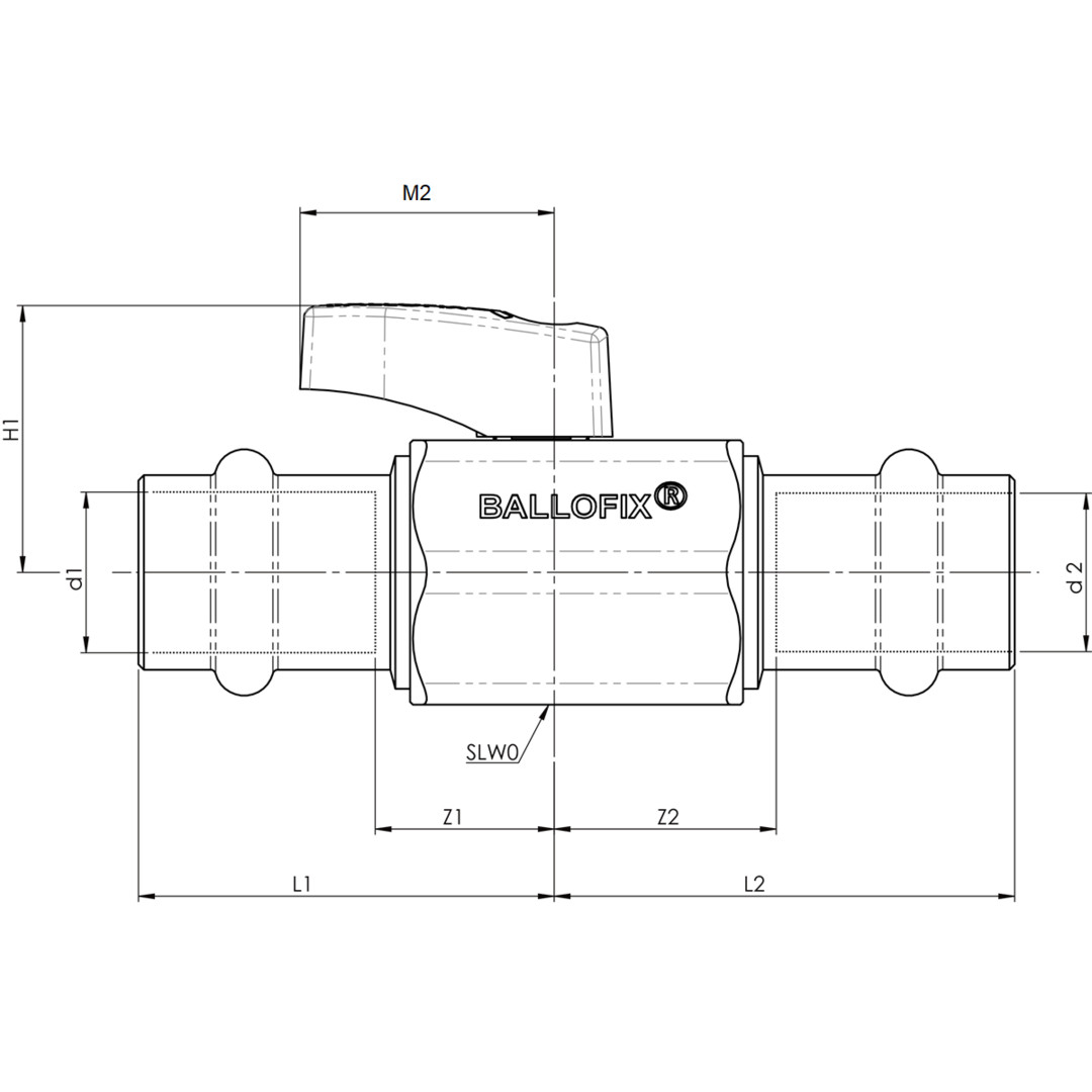 für Wasser, Luft und technische Gase, mit Handgriff (schwarz), T-max. 120°C, PN10, beidseitig mit Pressanschluss für Kupfer- und Edelstahlrohr