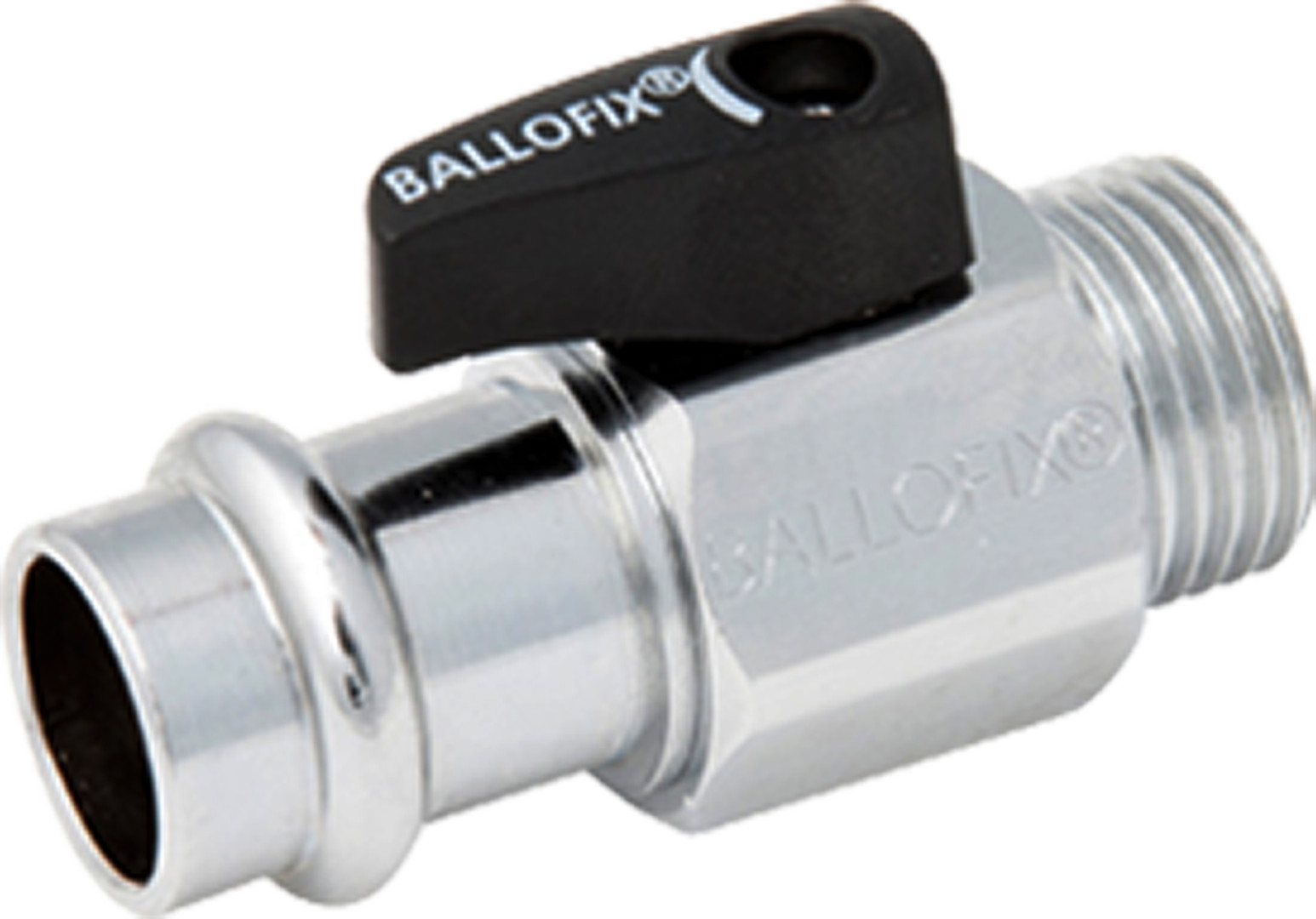 AIPS Mini-Kugelhahn Ballofix B3816 Press 15 x G1/2, Messing, verchromt W535599