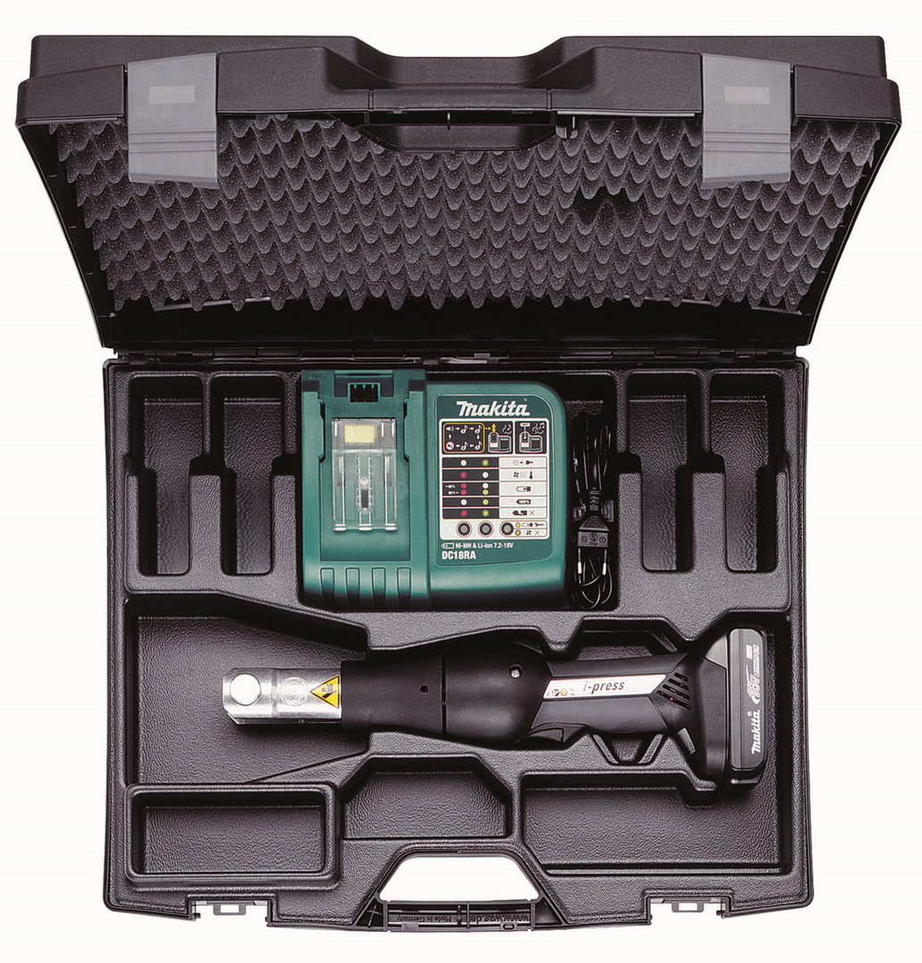 schnelles Verpressen durch kurze Presszeit von 3-4 Sekunden, Akkuladezeit von 15 Minuten (1,5 Ah), kompatibel zum Werkzeug MAP1
