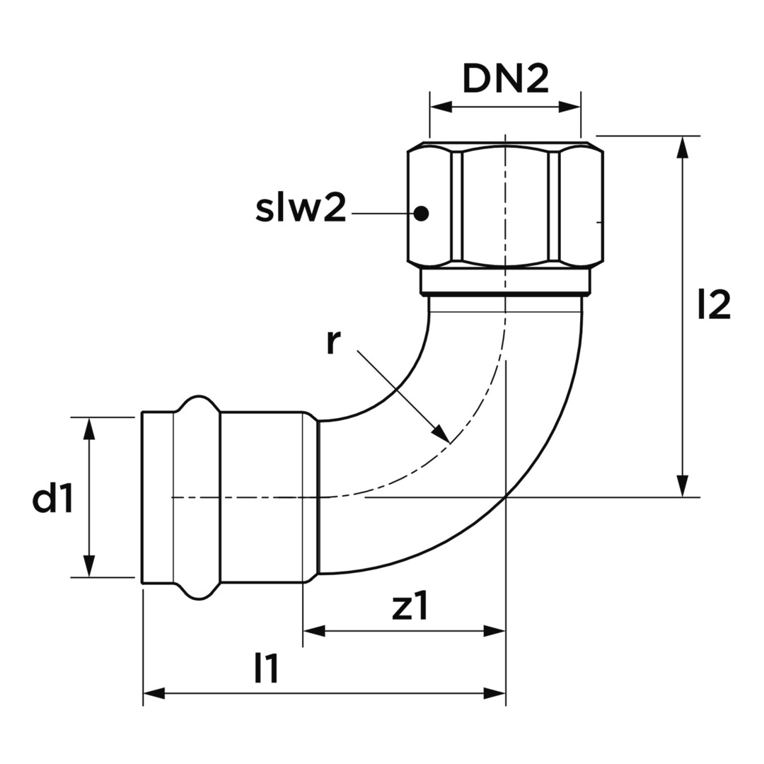 AIPS Übergangswinkel VSH SudoPress SP8090GV 15 x Rp 1/2, C-Stahl, 90Grad, EPDM-O-Ring W886281