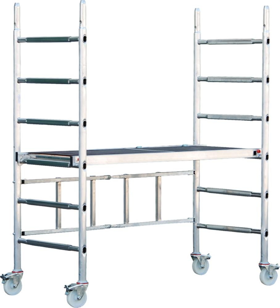 Hinweis: Das leichte Fahrgerüst ist flexibel einsetzbar und hat kompakte Lager- und Transportmaße.