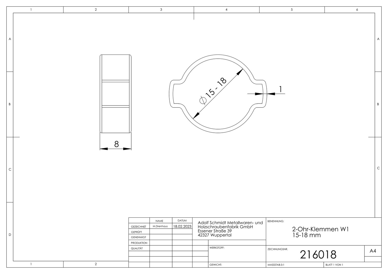 ASW 2-Ohr-Klemme W1 15-18 mm, verzinkt