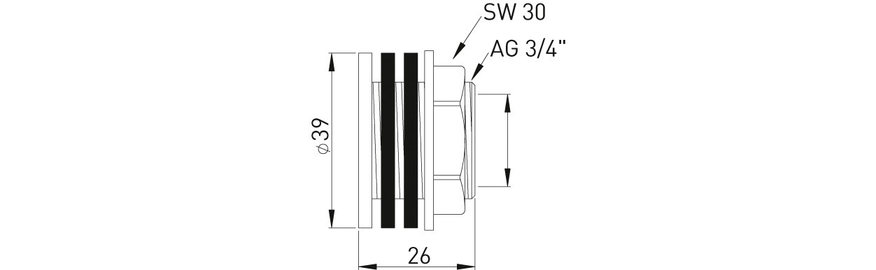 ASW Behälterverschraubung 3/8" x 1/2", Messing CW617N roh
