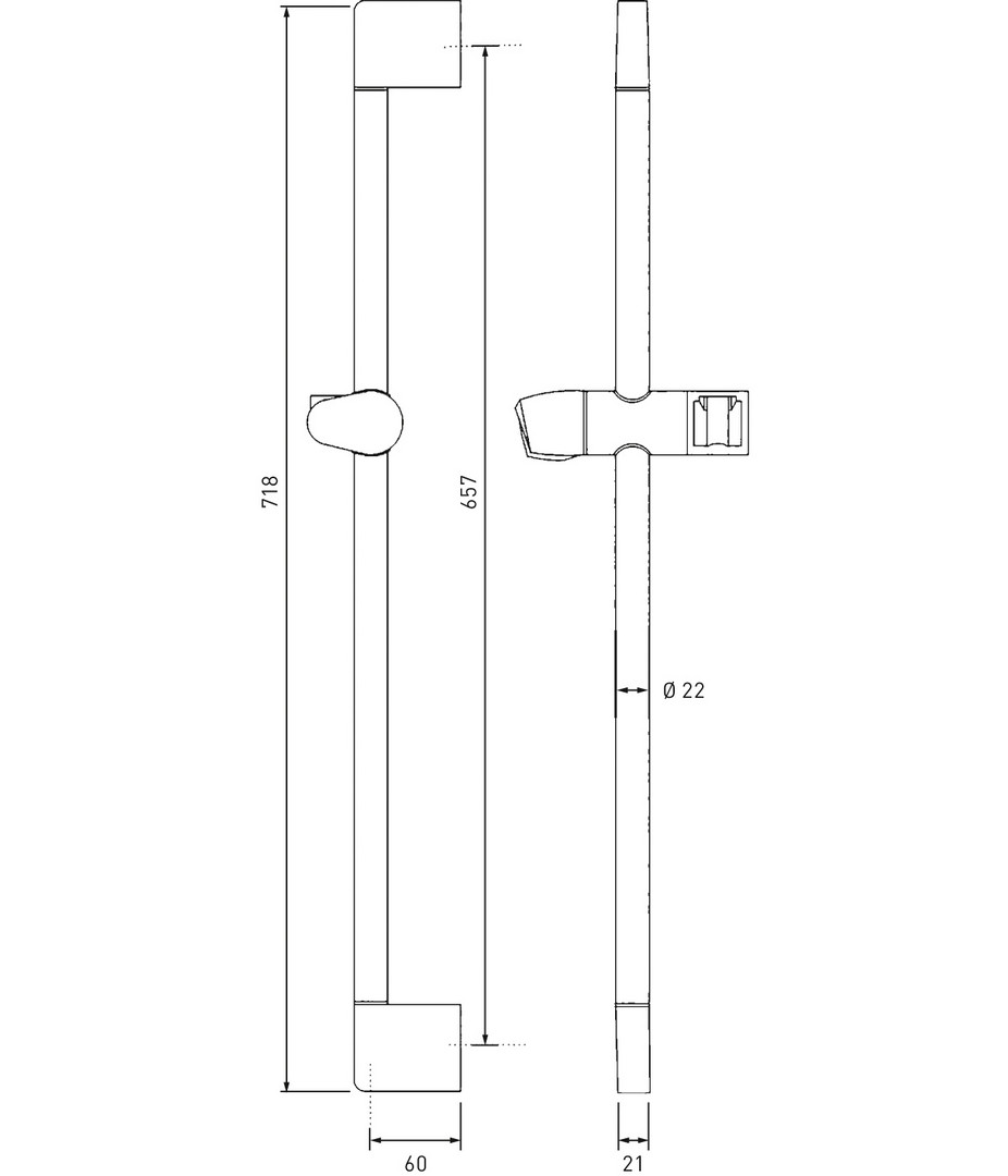 ASW Brausestange Sensitive 600 mm, Rohr d= 22mm, Konusgleiter, verchromt