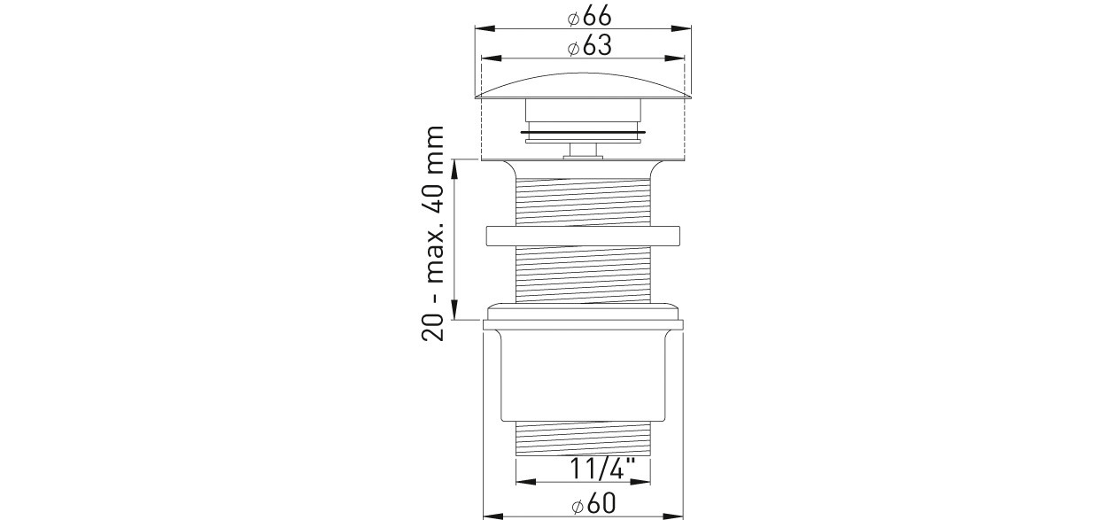 ASW Design-Ablaufventil 1 1/4"xd= 63mm, ohne Überlaufschlitze, Ø 66 mm, Messing matt schwarz