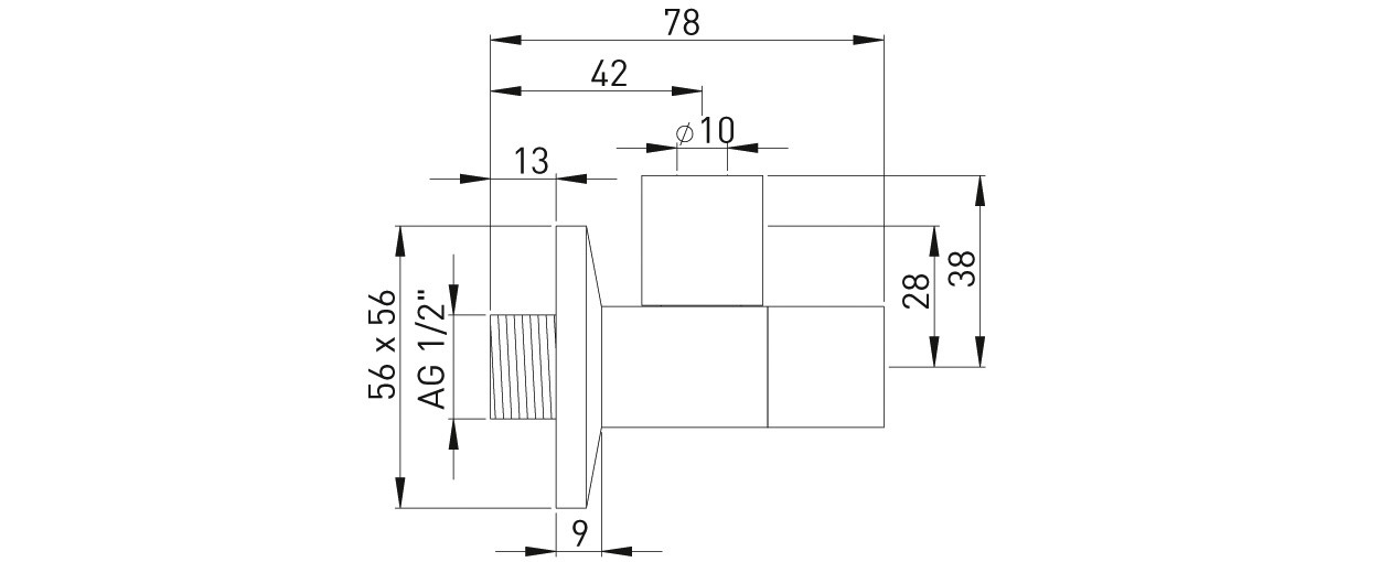 ASW Design-Eckventil 1/2" x 10 mm, Messing verchromt, quadratische Bauform