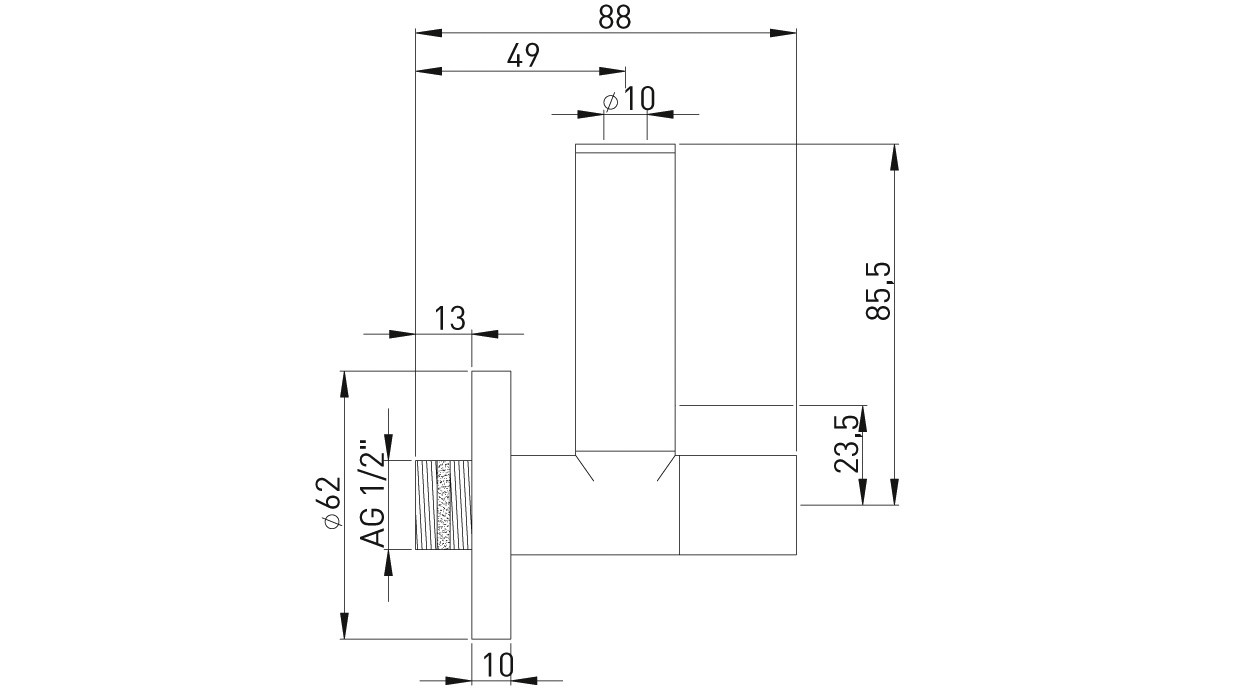 Abmessungen abzweigender Anschluss 10 mm