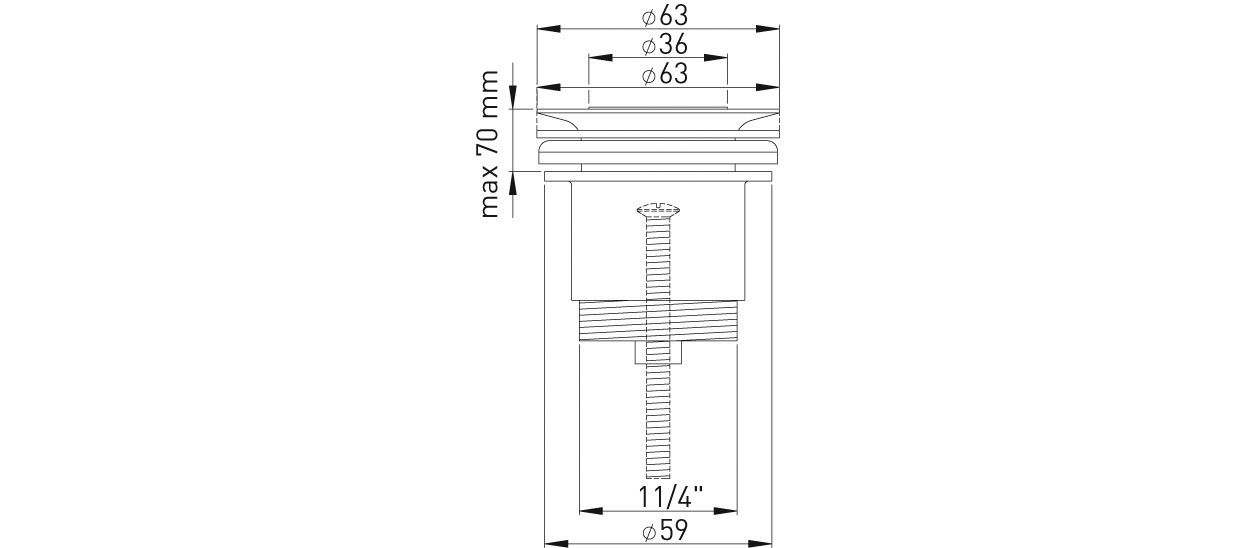Messing verchromt, Stopfen herausnehmbar, Ø 36 mm, nicht verschließbar
