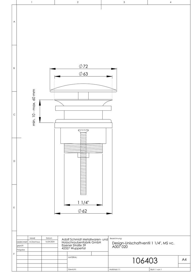 | Nenndurchmesser Auslass | 1 1/4 Zoll |