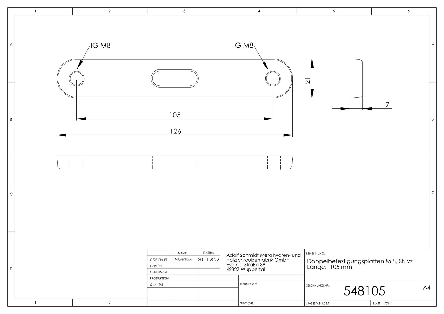 ASW Doppelbefestigungsplatte M 8, Länge 105 mm, Stahl verzinkt