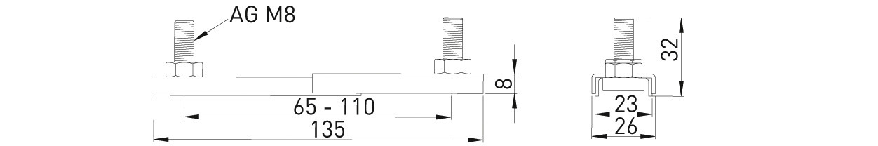 ASW Doppelhalter M 8, Stahl verzinkt, Verstellbereich 65-110 mm