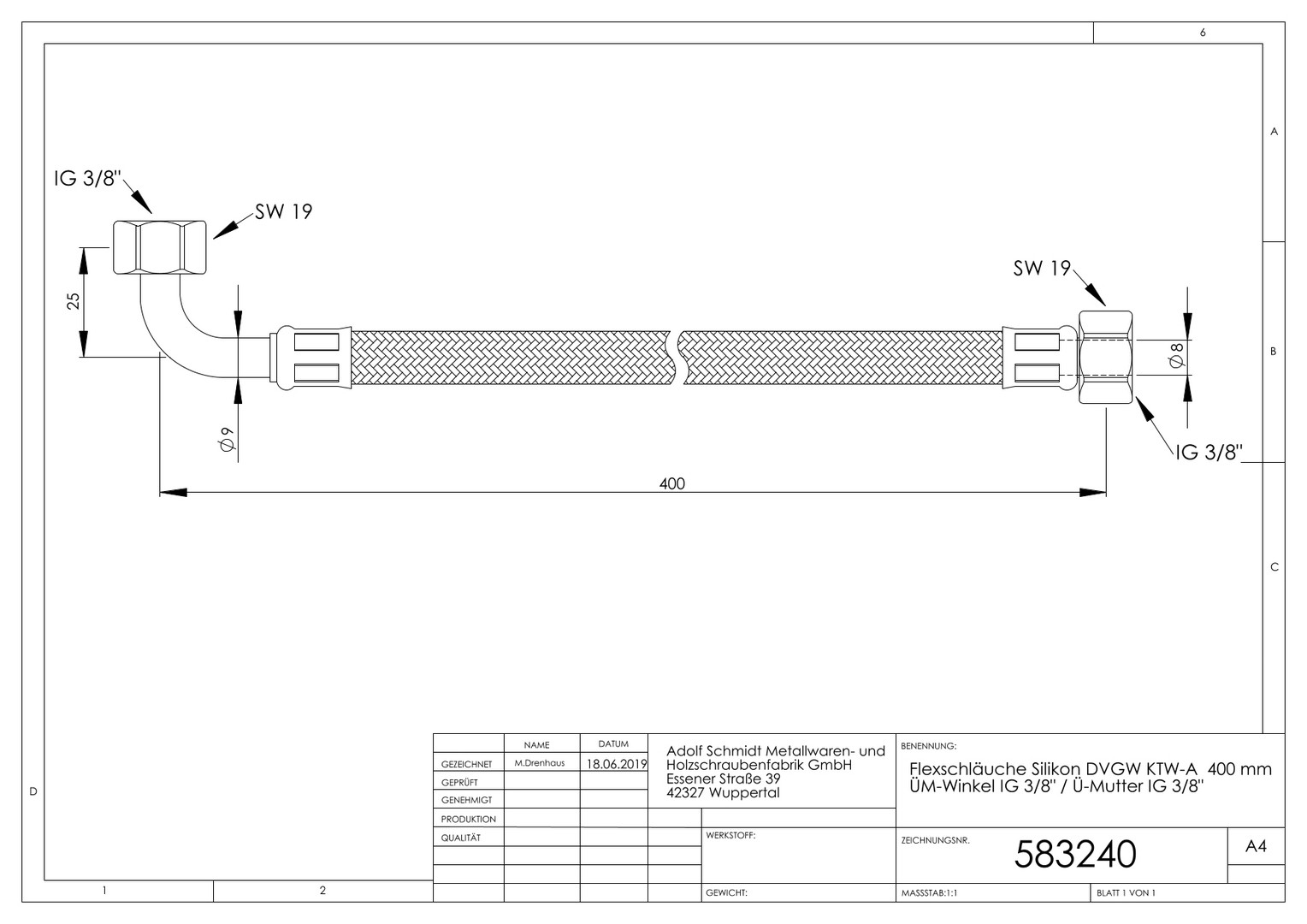 ASW Flex-Trinkwasserschlauch 400 mm, 3/8" IG Überwurfwinkelx3/8" IG Überwurfmutter