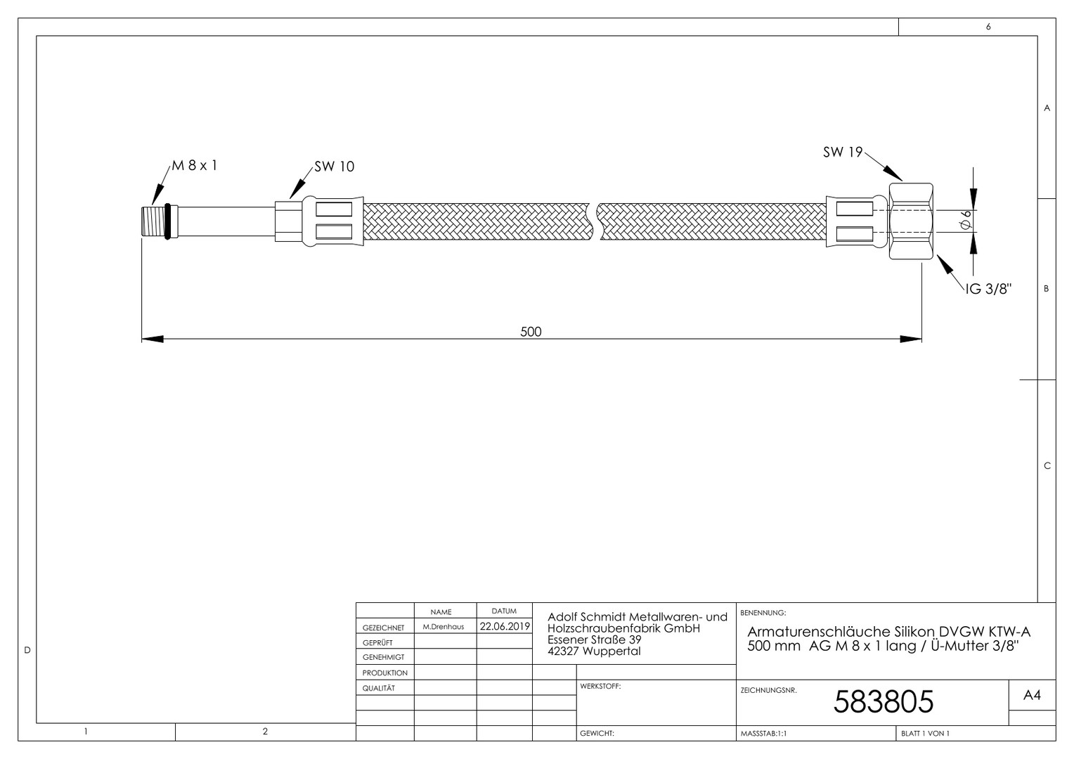 ASW Flex-Trinkwasserschlauch AG M 8 x 1, 500 mm, lang, Überwurfmutter IG 3/8"