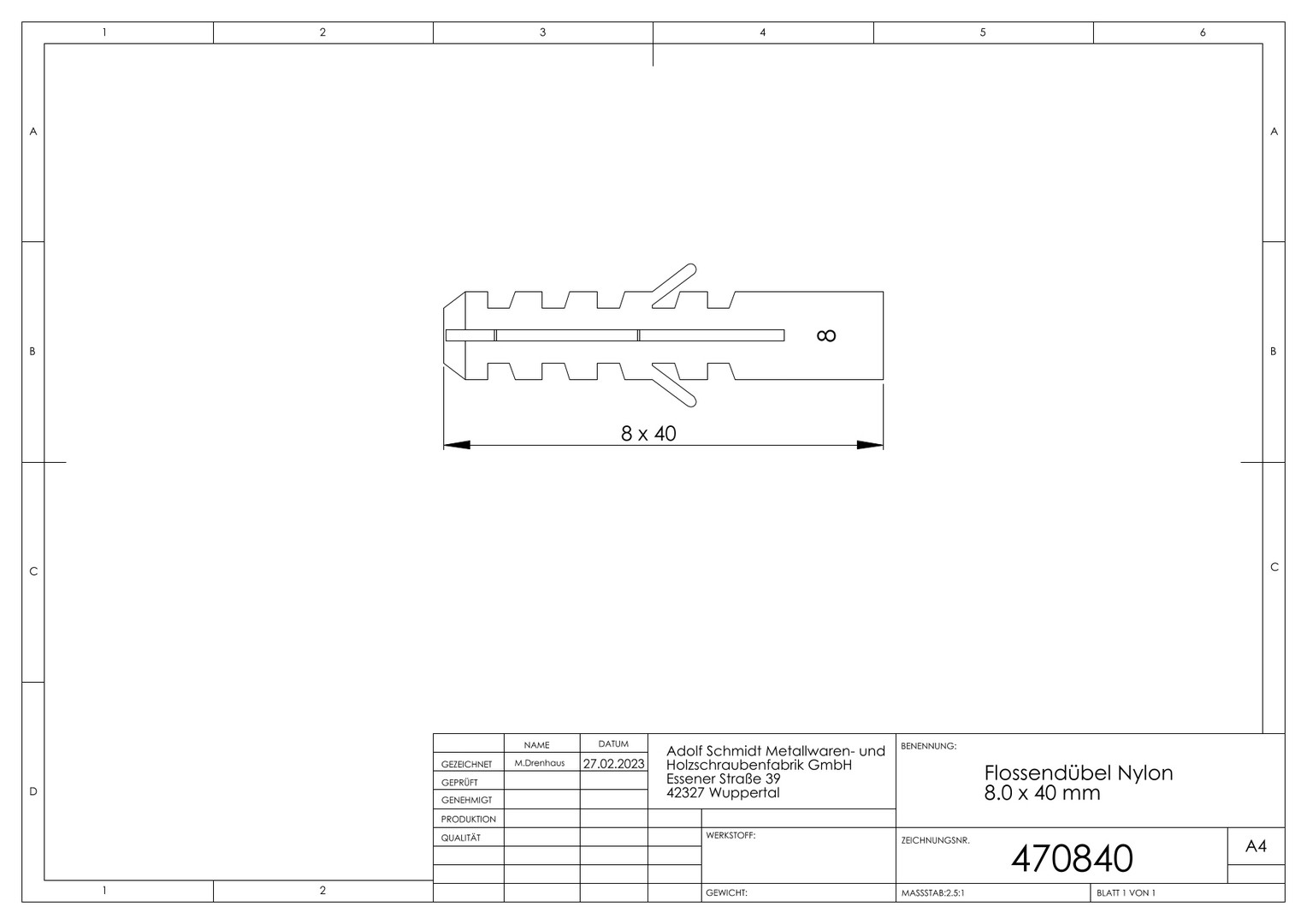 ASW Flossendübel Ø 8 mm x 40 mm, Ø 4,5-6,0 mm, Nylon