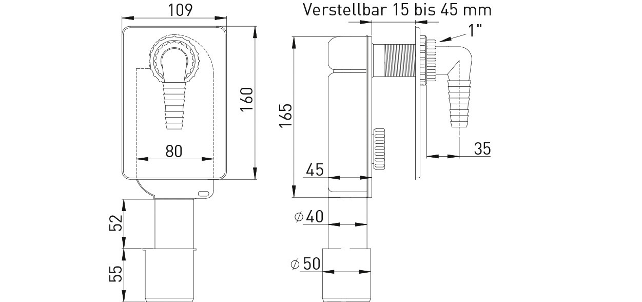 | Rohraußendurchmesser Abflussrohr | 50 mm |