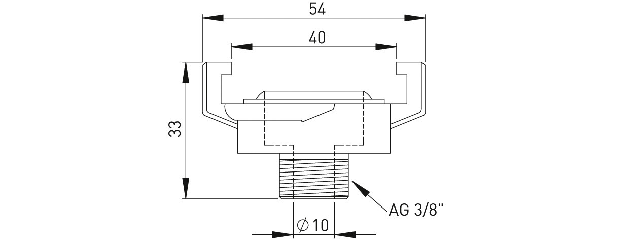 ASW Gewindestück AG 3/8", Nockenweite 40mm, Messing roh