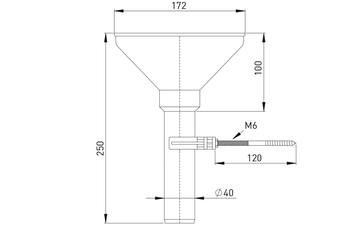 ASW Leckwassertrichter 40 x 250 mm, PP weiß, mit Verstellrohr und Wandhalterung
