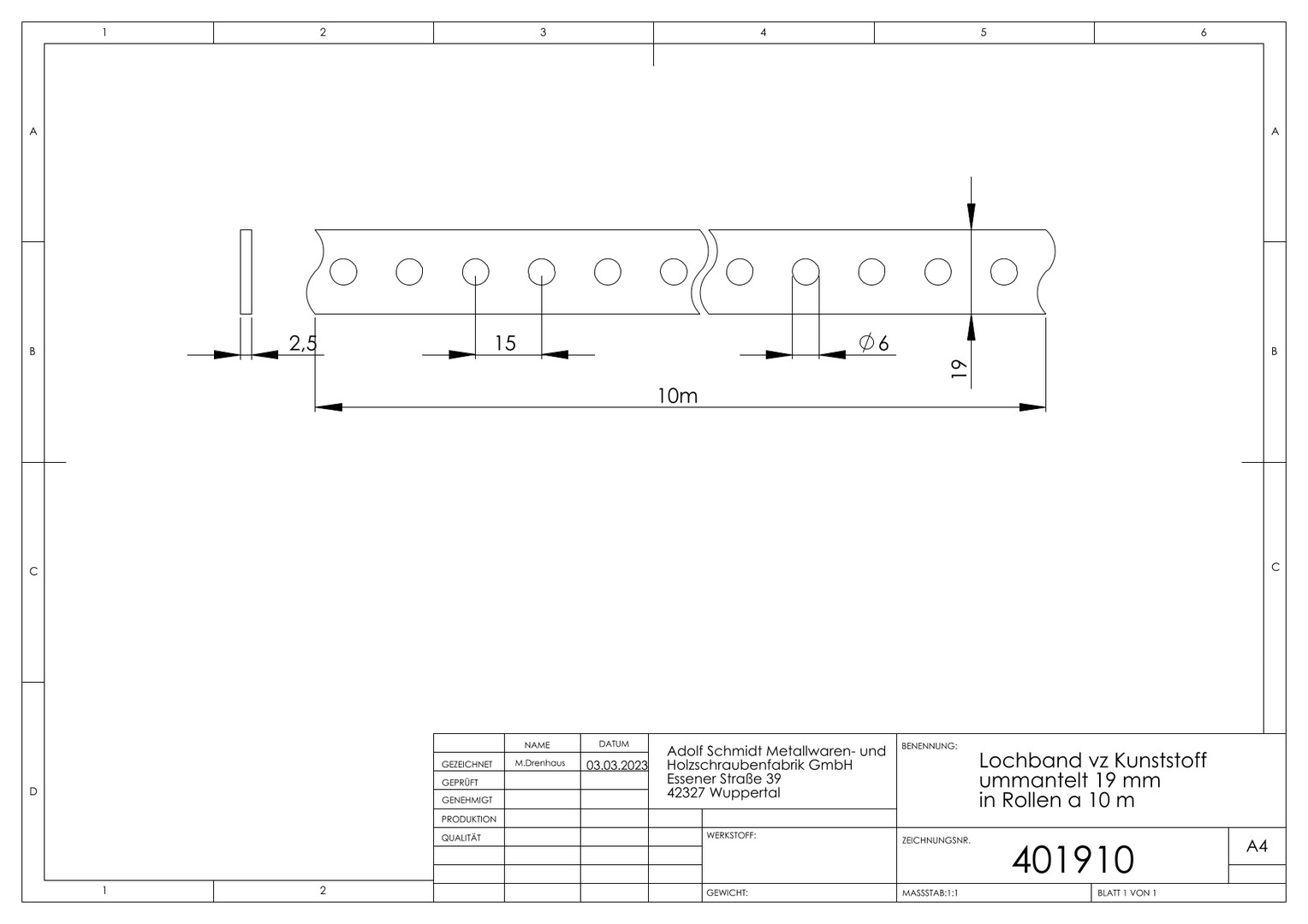 ASW Lochband 19 mm, Kunststoffummantelt, Rolle a 10 m