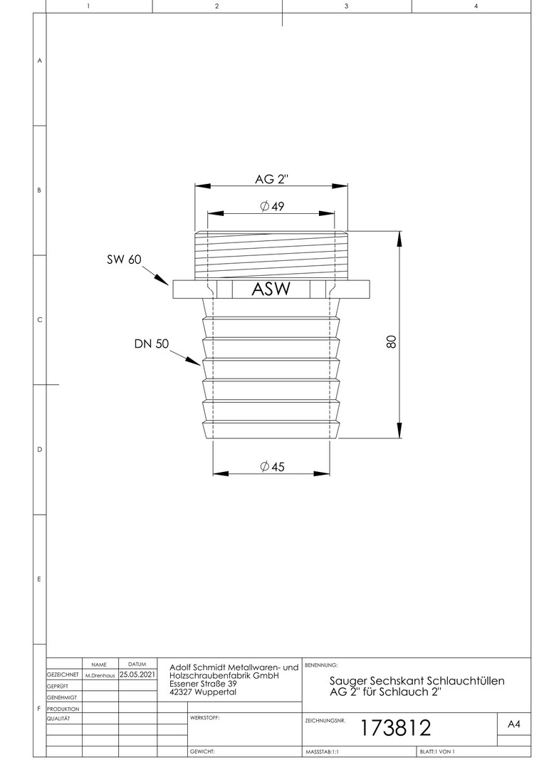 | Abmessung Gewindeanschluss in Zoll | 2 Zoll |