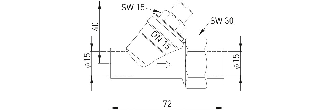 ASW Schrägsitz-Rückschlagventil 15 mm, Messing CW617N roh, Lötmuffe W867790