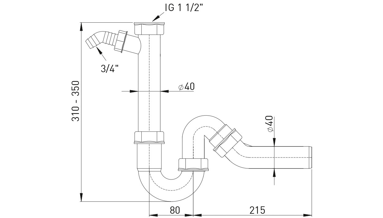 ASW Spülengeruchsverschluss 1 1/2" x 40 mm, universal, PP weiß, mit Schlauchanschluss einfach