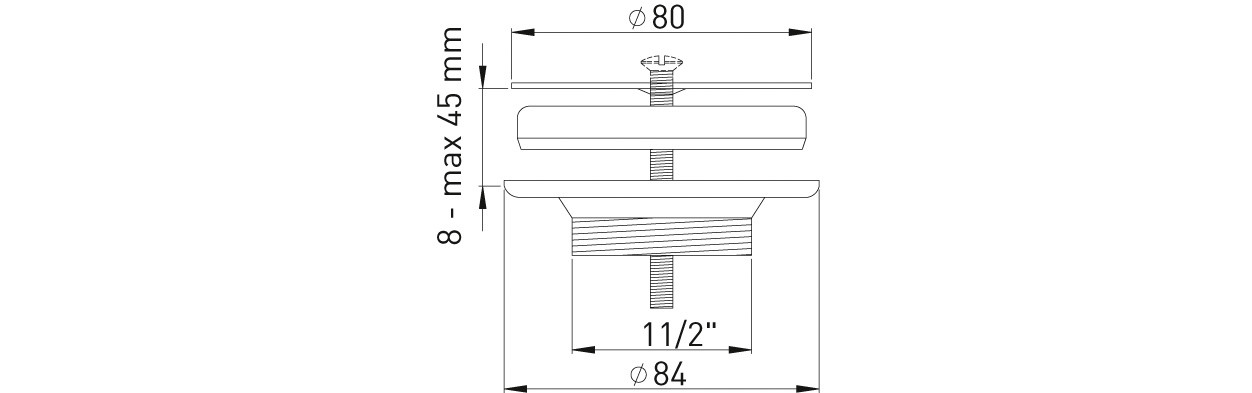 ASW Spülenventil 1 1/2" x 80 mm, Unterteil Messing vernickelt, mit Siebplatte