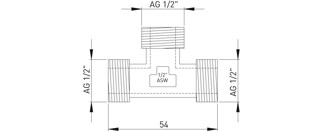 ASW T-Stück 3/8", mit AG, Messing CW617N roh