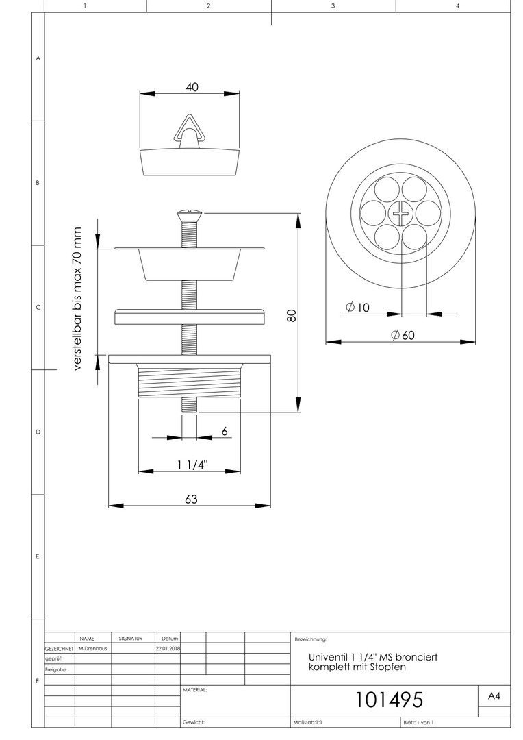 | Nenndurchmesser Auslass | 1 1/4 Zoll |