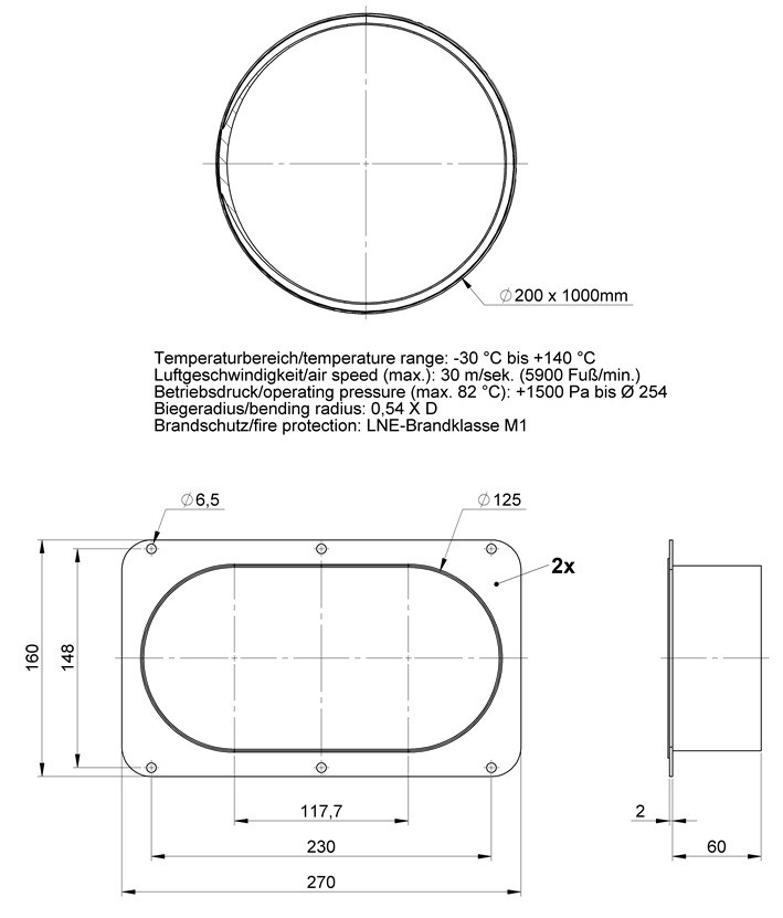 AT Anbindungsschlauch D200 mit Anschlussflanschen