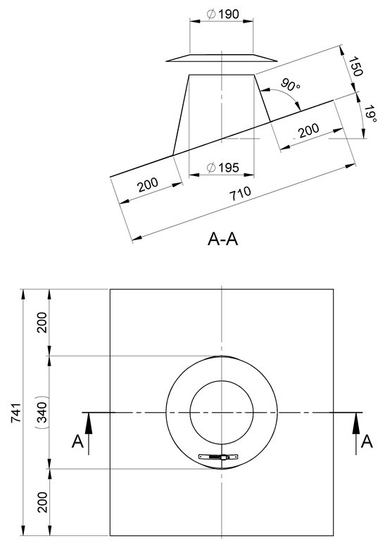AT Dachdurchführung 6-32 Grad DN125/190 m. Wetterkragen Edelst. gebürstet