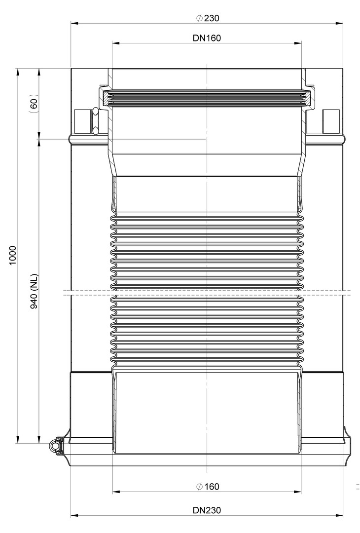 AT Kompensatorelement DN160/230, 940mm Edelstahl RAL