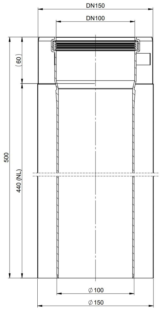 AT Rohr DN100/150, 440mm Edelstahl gebürstet