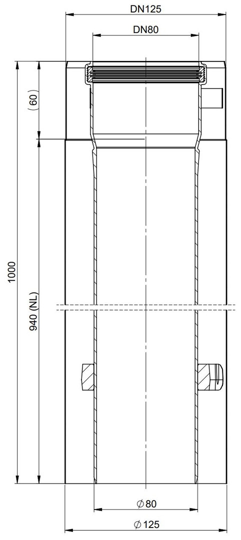 AT Rohr DN80/125, 940mm Edelstahl gebürstet