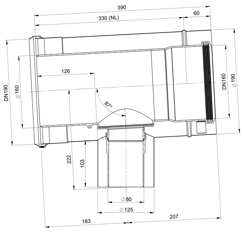 | Durchmesser Anschluss 3 | 160/230 mm |