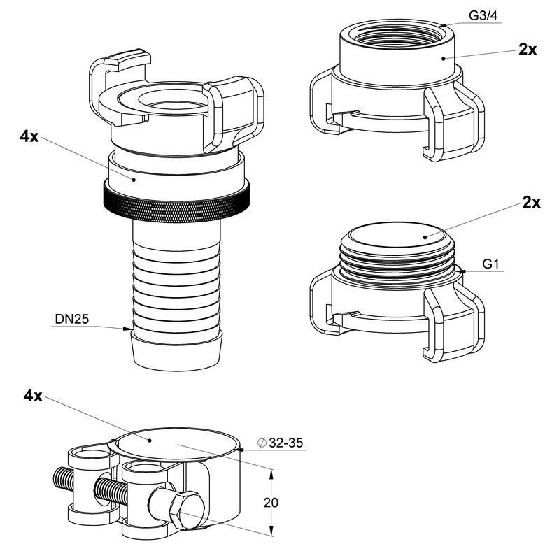 AT eFLEX+ Anschluss-Set, DN25, IG 3/4 Zoll - AG 1 Zoll