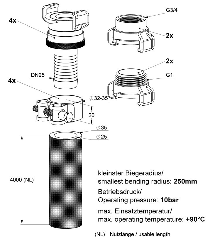 AT eFLEX Anbindungsschlauch für eHEAT 8.5, DN25, 2 x 2m