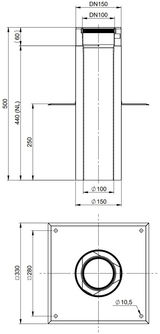ATEC Aufsatzplatte PolyClassic +Iron/White DN 60/100, 330 x 330 mm, PP, Edelstahl blank W605007