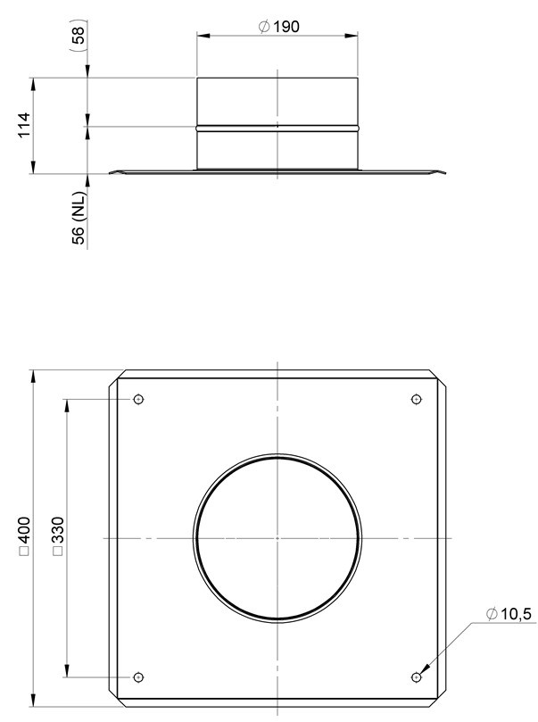 ATEC Aufsatzplatte PolyClassic +Iron/White DN 60/100, 330 x 330 mm, PP, Edelstahl blank W605007