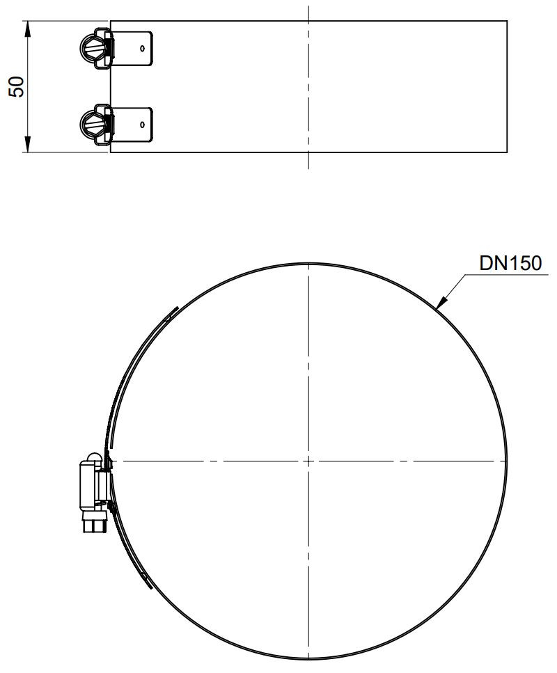 ATEC Klemmband DN 100/150, optional, PP, Edelstahl weiß