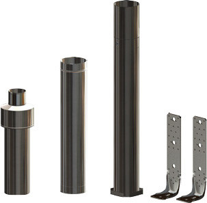 bestehend aus: 1 Mündungsabschluss 620 mm (ohne Innenrohr), 1 Mündungslänge 940 mm (ohne Innenrohr), 1 Schachtadapter, 2x Sparrenwinkel, max, Inst. Höhe über Dach ohne eitere Abspannung, ohne CE-Kennzeichnung
