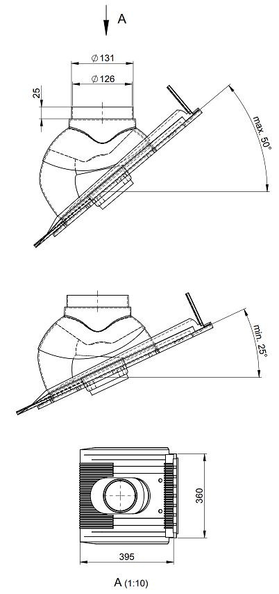 ATEC Schrägdachpfanne 25Grad-50Grad, DN 60/100-DN 80/125, ziegelrot