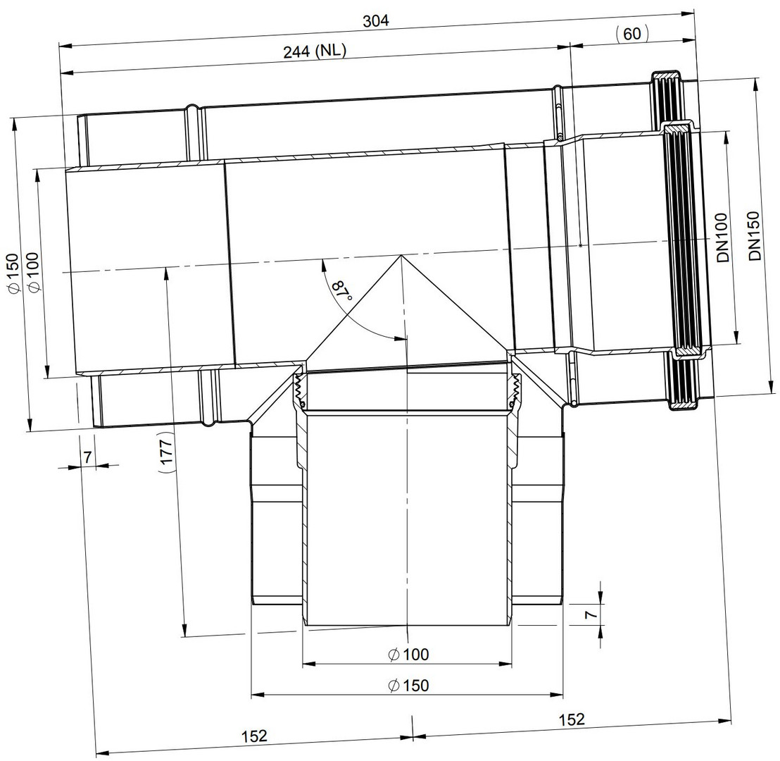 Durchmesser Abgas- und Zuluft-Rohr 100/150 mm