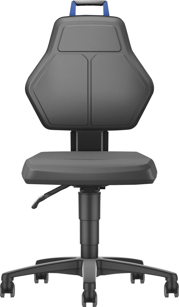 Arbeitsstuhl mit Rollen Integralschaum - blauer Griff FORUM