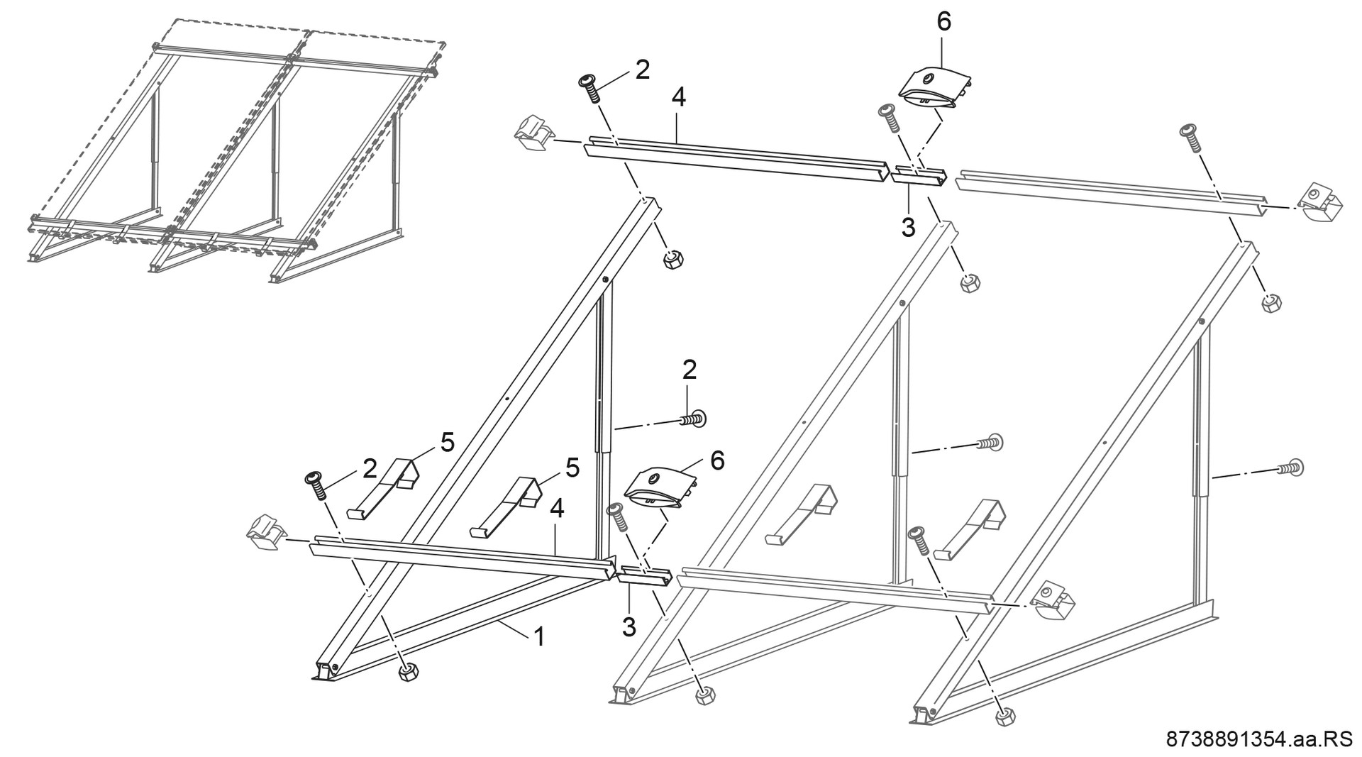 pro weiterem Kollektor notwendig, Aluminium-Aufstellprofile mit einstellbarem Neigungswinkel von 30-60°, Aluminium-Profilschienen und Montagematerial, benötigt wird FKF3-2 und Flachdachwannen-Set FKF7-2 oder bauseitige Befestigung