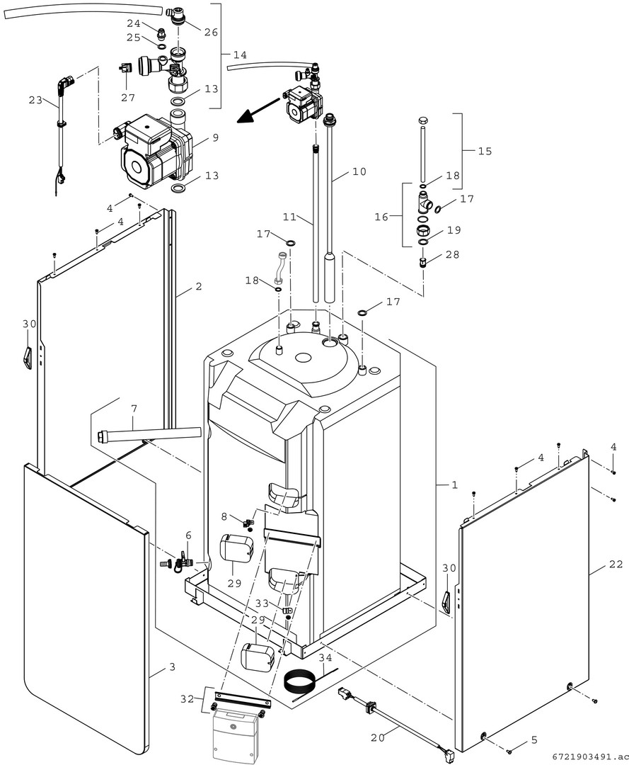 für Einfamilienhäuser, bivalenter Schichtladespeicher, Solarstation MS 100 für solare Warmwasserbereitung mit bis zu drei Kollektoren, Modulationsbereich bis 1:10 (Warmwasserbereitung), Aluminium-Silizium-Wärmeblock mit verbesserter Energieeffizienz, Bedienung mit Systemregler CW 400 mit patentierter "SolarInside ControlUnit" Regelungstechnik, Einstellung der Gasart an der Gasarmatur, Auslieferung vorjustiert auf Erdgas E/H, Anpassung auf Erdgas LL/L durch Einstellung an der Gasarmatur, Bedienfeld UI 301 zu Inbetriebnahme und Service, Hocheffizienzpumpe für Heizung und Schichtladekreis, 3-Wege-Ventil, manueller Entlüfter, Sicherheitsventil, Temperaturbegrenzer