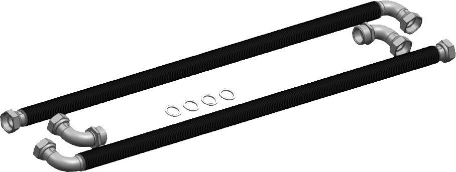 mit 2x Edelstahlwellrohrschläuchen 1", 0,5 m, 4x Flachdichtungen, ohne Isolierung