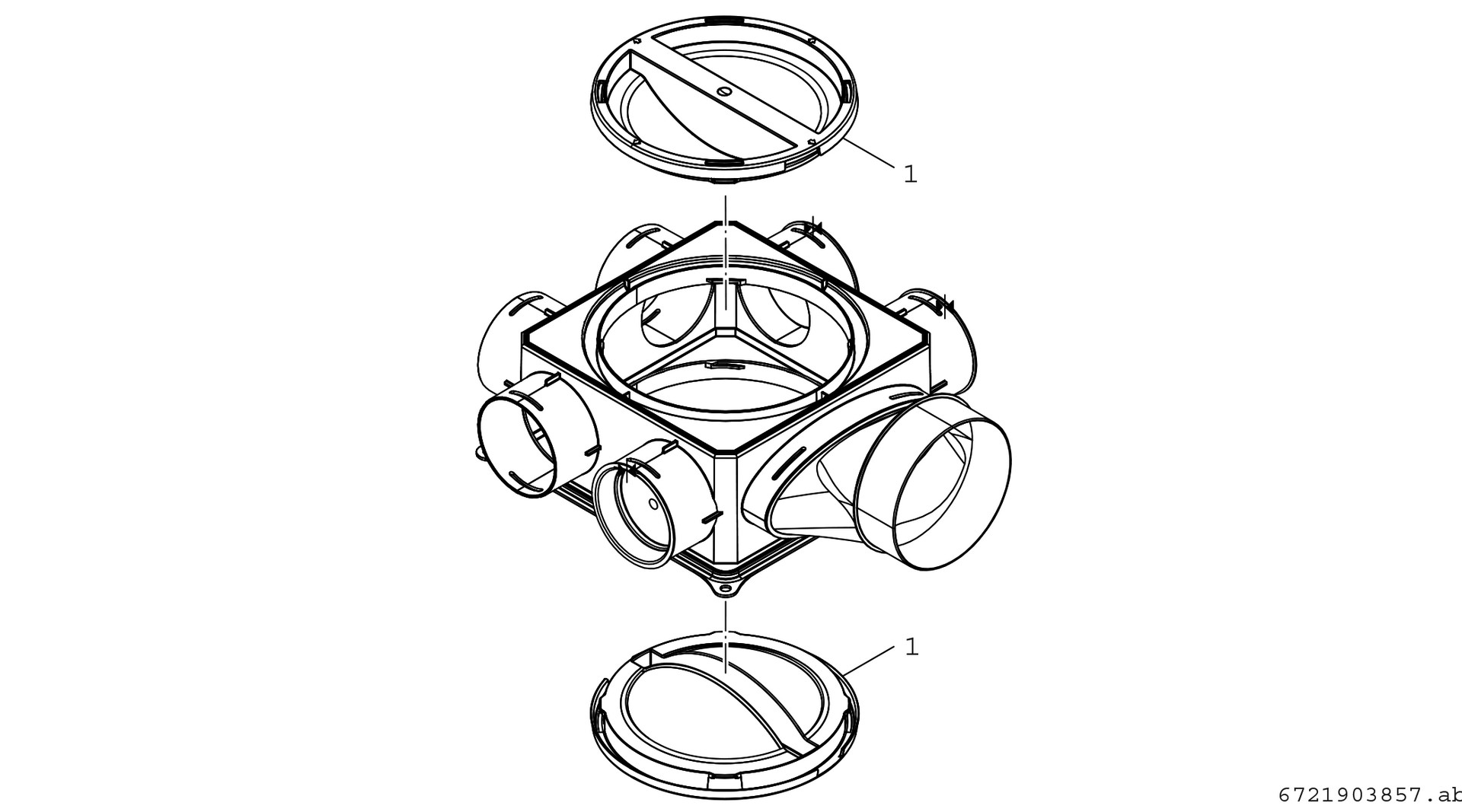 für seitlichen Hauptleitungsanschluss oval DN 125 als Kompaktverteiler für Rund- und Flachkanalsystem mit bis zu 6 Rundrohranschlüssen DN 75 oder 6 Flachkanalanschlüssen, für Flachkanalanschluss Verbinder FKV 140-1 in entsprechender Anzahl erforderlich, 3x Stopfen VKS lose im Lieferumfang, Revisionsöffnung an der Ober- und Unterseite, Verschlussdeckel für Revisionsöffnungen werksseitig montiert, flexible Montagemöglichkeiten (für flache Wand/Boden/Deckenmontage), Hauptleitungsanschluss DN 125 lose im Lieferumfang, (LxBxH) 318 x 299 x 109 mm