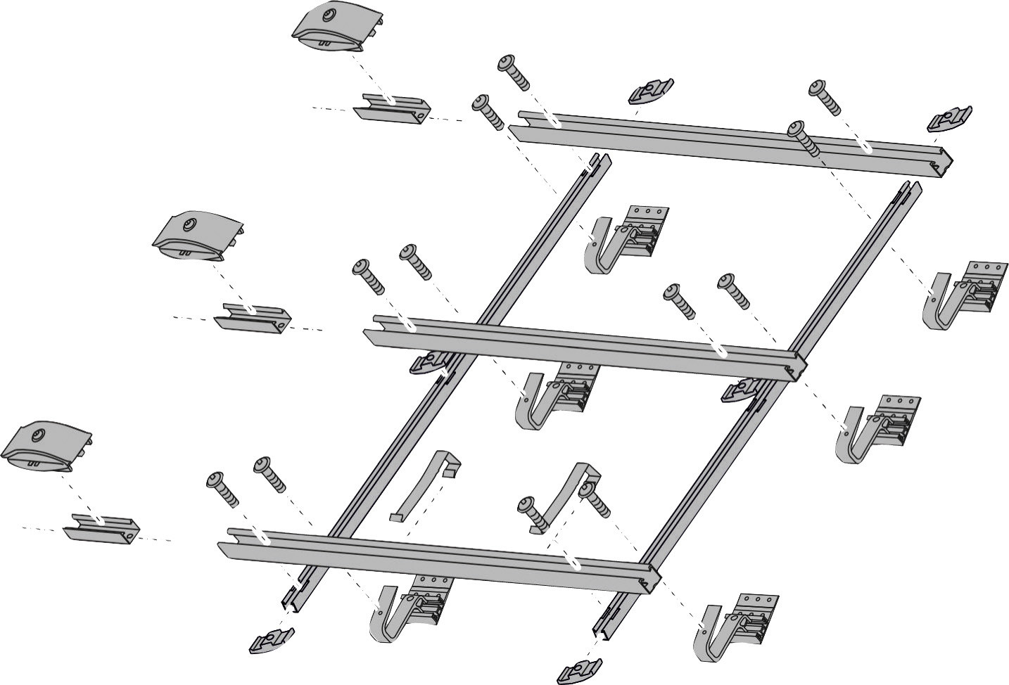 für höhere Schneelasten bis 3,8 kN/qm und 1,1 kN/qm Windlasten oder für Schneelasten bis 3,1 kN/qm und 1,6 kN/qm Windlasten, pro weiterem Kollektor (ab Kollektor 2) einmal notwendig, Aluminium-Profilschienen, Befestigungsmaterial und Dachanbindung für den ersten Kollektor
